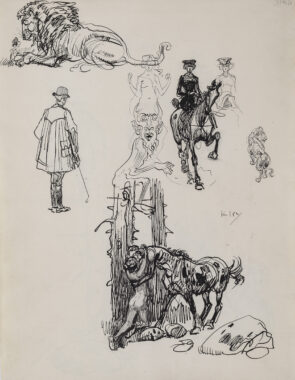 Skizzenblatt mit Fabelwesen und antiken Figuren