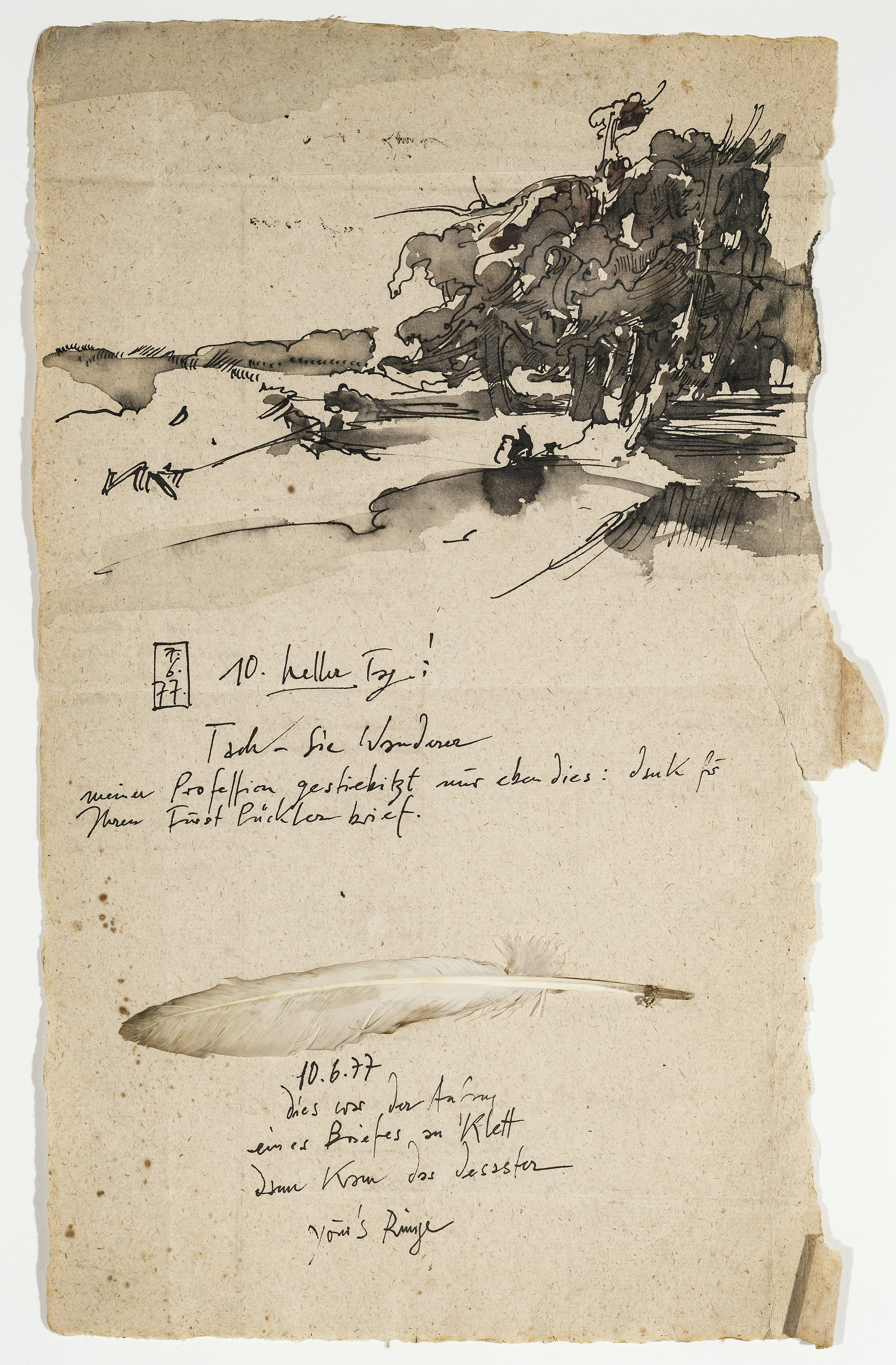 „7.6.77 10. Heller Tag! Tach – Sie Wanderer meine Profession gestiebitzt nur eben dies: dank für Ihren Fürst Pückler brief. 10.6.77 Dies war der Anfang eines Briefes an Klett dann kam das Desaster your’s Runge“