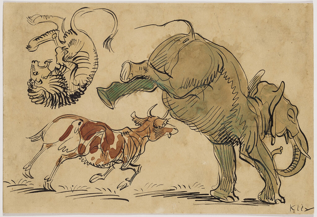 Skizzenblatt mit Fabelwesen und antiken Figuren